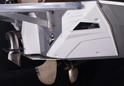 The Nautique Surf System® (NSS) with WAVEPLATE® technology is integrated into the hull to engage on either side of the transom at surf speeds working seamlessly with the running surface to create a larger wave with each pound of ballast. Offering full adjustability, the WAVEPLATE extends outward and down from the transom to intercept and redirect the flow of water forming a wave that can be customized for every surfer. NSS allows surfers to switch sides instantly without the need to offload ballast or people and fine-tune the wave with variable settings that adjust steepness and shape by controlling exactly how much the WAVEPLATE is engaged.NAUTIQUE SURF SELECT