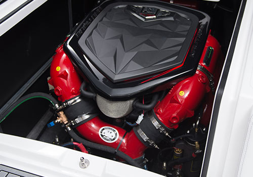 Our JL Audio stereo system delivers the best sound in the industry tuned perfectly for your Nautique boat. The Super Air Nautique 230 comes standard with four JL MX-Series speakers. Upgrade to the MX-Series Premier package which adds two more JL MX-Series speakers and a 10” subwoofer driven by a 6-channel amplifier to make it complete. Turn it up behind the boat with the choice of our 6x9 RMA/Focal or premium JL M-Series 7.7” tower speakers.ENGINE