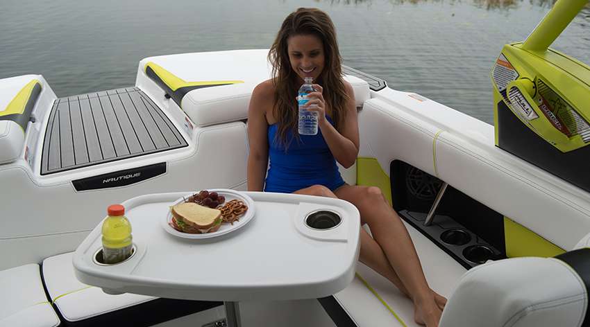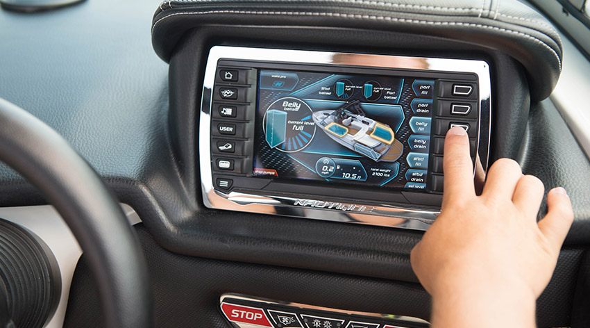 Nautique Surf Select gives surfers the ability to customize their ride from behind the boat at the touch of a button. Transfer on the fly with the Nautique Surf Switch to work on your frontside and backside game with no hesitation. Don’t sweat the details and fine-tune your experience right from your wrist with the Surf Select app for Pebble™ watch. Compatible with all waterproof Pebble™ watches, Surf Select adjusts the Zero-Off Speed Control, NSS, stereo track and volume while allowing surfers to transfer the wave instantly or at a three-second countdown. New for 2017 Surf Select also features ballast shift on Pebble Time watches allowing you to find perfect balance.INTERIOR