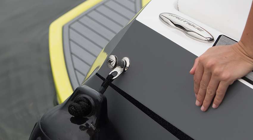 The Nautique Surf System® (NSS) with WAVEPLATE® technology is integrated into the hull to engage on either side of the transom at surf speeds working seamlessly with the running surface to create a larger wave with each pound of ballast. Offering full adjustability, the WAVEPLATE extends outward and down from the transom to intercept and redirect the flow of water forming a wave that can be customized for every surfer. NSS allows surfers to switch sides instantly without the need to offload ballast or people and fine-tune the wave with variable settings that adjust steepness and shape by controlling exactly how much the WAVEPLATE is engaged.NAUTIQUE SURF SELECT