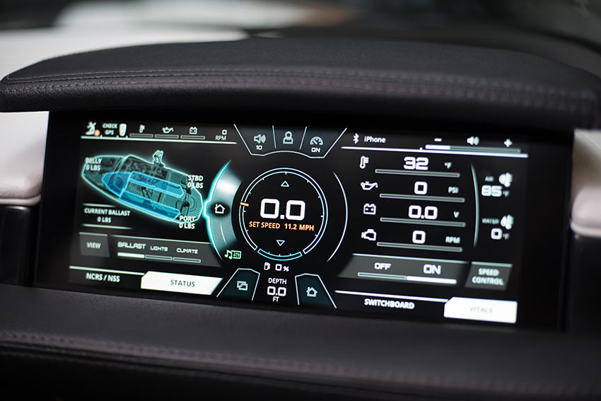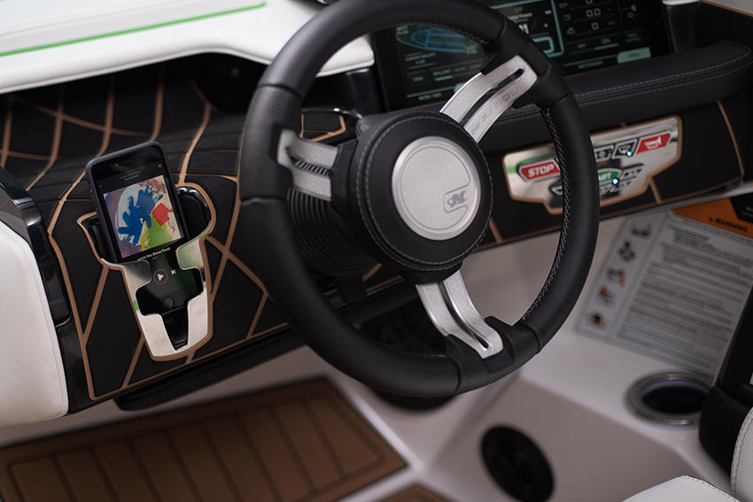 Nautique Surf Select gives surfers the ability to customize their ride from behind the boat at the touch of a button. Transfer on the fly with the Nautique Surf Switch to work on your frontside and backside game with no hesitation. Don’t sweat the details and fine-tune your experience right from your wrist with the Surf Select app for Pebble™ watch. Compatible with all waterproof Pebble™ watches, Surf Select adjusts the Zero-Off Speed Control, NSS, NCRS, stereo track and volume while allowing surfers to transfer the wave instantly or at a three-second countdown. New for 2017 Surf Select also features ballast shift on Pebble Time watches allowing you to find perfect balance.INTERIOR