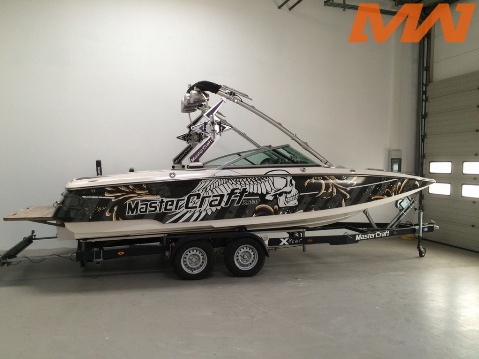 new MC-Wrap »Flying Skul«. Wir bieten Vorzugspreise auf alle Lagerboote; gern erstellen wir Ihnen auch ein persönliches Angebot für ein Neuboot Ihrer Wahl. Viele 2017er Modelle von MasterCraft bei uns verfügbar; WIR FREUEN UNS AUF IHREN ANRUF -- DIREKT UNTER: +49 (0)5541-988050 oder kurze Mail an: info@mastercraft-germany.de www.master-craft.de********* Beschreibung: Erstwasserung + Garantiebeginn August 2010. Perfect Pass WB., Tower + Board-Racks (schwenkbar); Bimini-Top; PURE Vert-Ballast und zusätzlich Fly-High Ballast (4sacs); 4-fach Tower Speakers; 2-Kreis-Kühlung; Zinkanoden; Heizung; etc. --- EINE LISTE DER KOMPLETTEN AUSSTATTUNG SENDEN WIR IHNEN GERN AUF WUNSCH ZU! Bodenseestufe (BSO-II) ist optional für dieses Boot erhältlich (fragen Sie uns!)