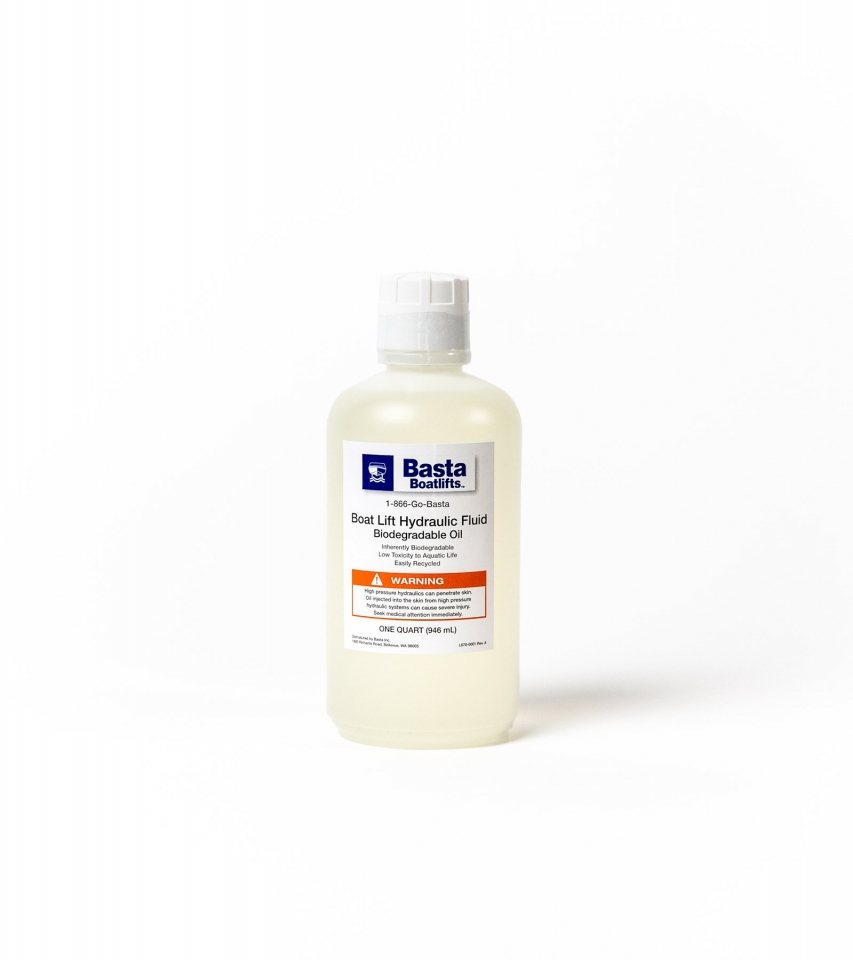 Biodegradable Hydraulic Fluid approved for use in all Basta Boatlifts boat lifts.
