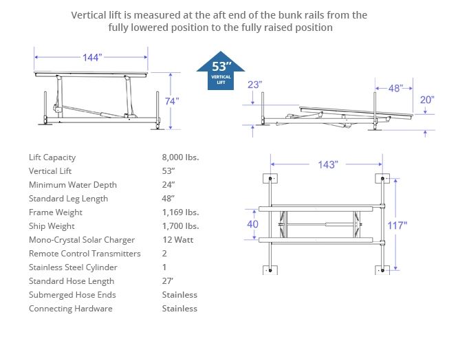 The most efficient, reliable 8,000 lb. capacity boat lift