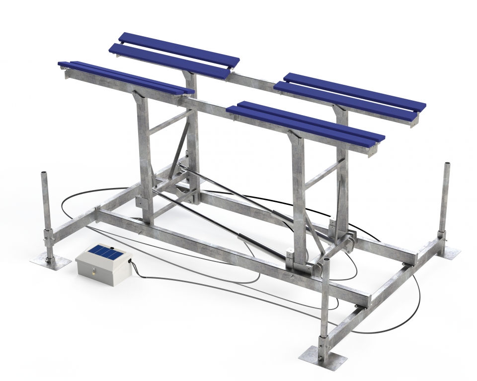 raised lift. Basta Boatlifts’ patented Over-Center™ gravity locking design with