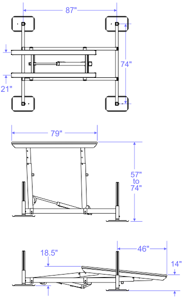 This freestanding self-contained boat lift features our patented Over-Center™ gravity lock, balanced load H-frame technology, single aluminum-bore hydraulic cylinder design, stainless steel cylinder/hose fittings, duplex-bonded synthetic hydraulic hoses, full length rotating carpeted bunk rails and marine grade hardware.