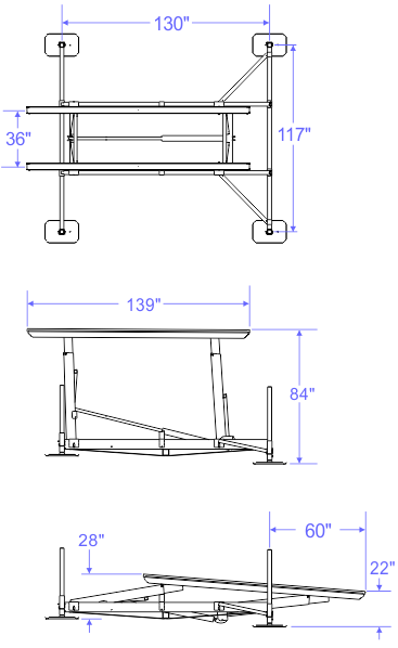 - All boat lift prices include: legs, feet, solar charging hydraulic power unit and two wireless key fob remote controls.