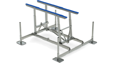 This 4,500 lb freestanding self-contained boat lifts feature our patented Over-Center™ gravity lock, 'balanced load' H-frame technology, single aluminum-bore hydraulic cylinder design, stainless steel cylinder/hose fittings, duplex-bonded synthetic hydraulic hoses, full length carpeted bunks and marine grade hardware.