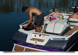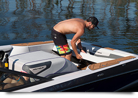 In years past, the words spacious and storage couldn’t co-exist with the words closed bow. However, the Ski Nautique 200 has changed that. With the sleek, roomy storage compartments and the tournament love seat extension there is plenty of room for your gear and your crew. Our exclusive stitching, comfortable upholstery and stunning primary seating color options add to the enjoyment of your time spent inside the boat.